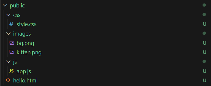 그러면 다음과 같이 public 디렉토리에 있는 정적 파일을 로드할 수 있다.